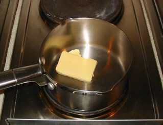 Melt the butter in a saucepan (we didn’t have microwaves back in my day), and pour directly in the ear canal. Cap with a cotton ball.