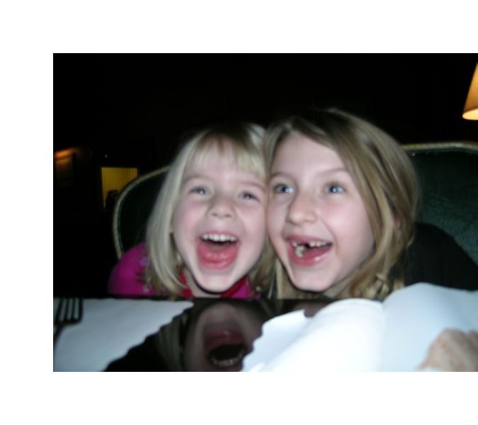 The girls wanted to wear dresses to dinner, so I helped them into their outfits. Just then, Tom returned from the bar. Perfect timing! Off we went to dinner. It was so scrumptious, but service was very slow. They must make each dish to order. On a positive note, our waitress bought Natalie and Pearl’s drawings for a dollar each. Check out these happy entrepreneurs!