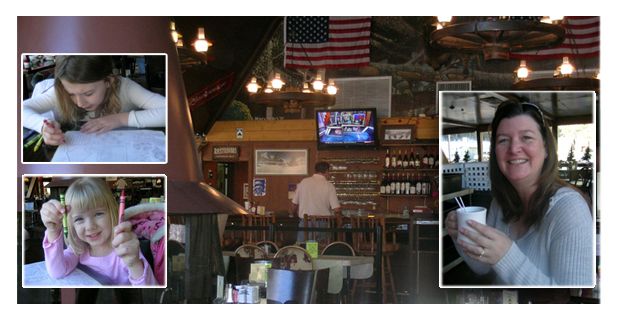 Sunday morning we had breakfast at the Mt Charleston Lodge near the summit. The girls colored, but there were no takers for their artwork. Tom tried to double his money, but no such luck. Breakfast was delicious and served quickly.