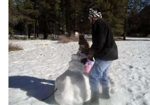 Tom and Pearl wasted no time building a snowman.